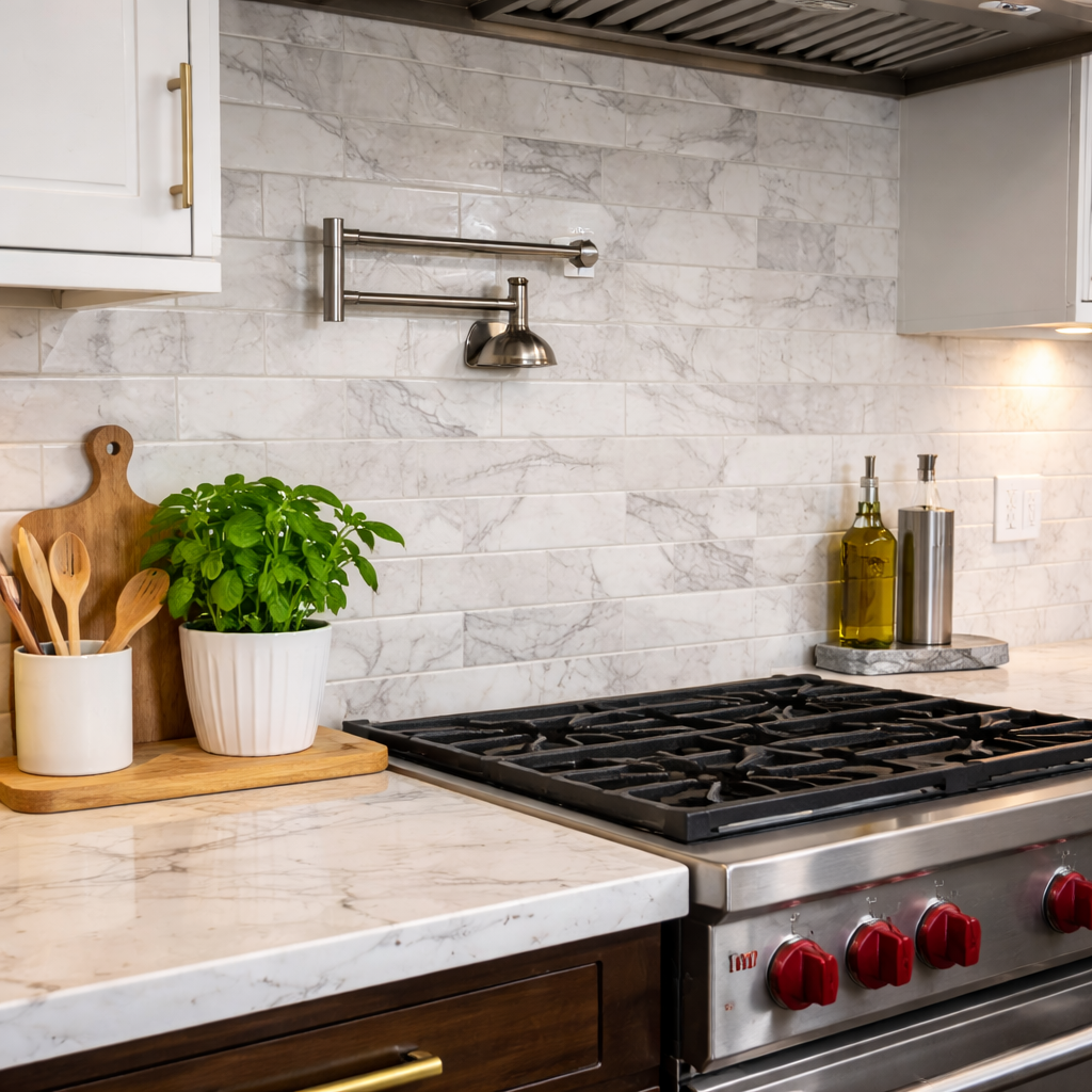 Custom countertops, backsplashes and stone installations crafted with precision and professional finishing for kitchens, bathrooms and commercial projects.